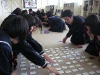 2年生の百人一首大会が行われました。上の句でとる生徒も多く,レベルの高い大会となりました。今回は1時間だけで1回だけ行われたので,他の時間も利用して,再戦を予定しています。
