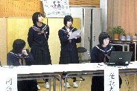 3年生が未来の羽咋を考え,1年かけて総合的な学習の時間での学んできたことの発表会を行いました。羽咋市役所の企画財政課と環境安全課の課長さんにも来ていただき,羽咋市の問題点などから,様々な提言を聞いていただきました。