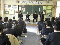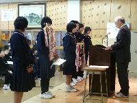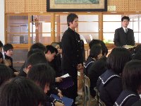 全校集会で運動面,文化面での多くの表彰伝達がありました。また,立志式でのスピーチを全校生徒にもう一度話をしてもらい,各学年ともひとつ先輩になる気持の準備になりました。集会の後には,全校生徒で行う最後の7回目の学習オリエンテーションが行われ,これまでのがんばりの成果も示されました。邑知潟の白鳥も旅立ちの準備をしています。チーム邑知も旅立ちと新しい出会いに向けて,がんばりましょう。