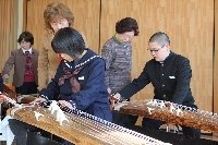 翔風会の皆さんに講師をしていただき,2年生の音楽の時間に箏教室を行っていただきました。はじめて箏に触れる生徒も多く,はじめは緊張しながらもご指導のおかげで楽しく体験をすることができました。短い時間でしたが,最後にはさくらを演奏できるまでに上達しました。