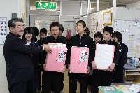 今年度エコ・スクール活動で収集したプルタブ約65kg(約13万個),古切手,書き損じはがきを羽咋市社会福祉協議会へ届けてきました。また,JRC委員会の2年生が福祉協議会の活動について取材を行いました。自分たちの収集しているものが,どのように役立てられているかを知ることで,よりエコ・スクール活動が深まりそうです。