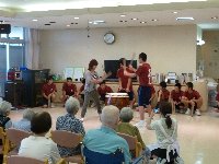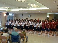 3年生のボランティアでおうちの里に訪問させていただきました。歌と太鼓の披露をし,アンコールもいただき,短い時間でしたが楽しい時間を一緒に過ごさせていただきました。おうちの里のみなさんありがとうございました。