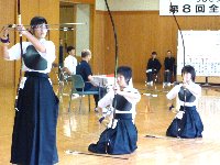 第8回全国中学生弓道大会において,本校弓道部が見事女子個人で優勝しました。また,女子団体でも決勝トーナメントを勝ち抜き,準決勝で敗れたものの見事3位入賞を果たしました。応援してくださったみなさまありがとうございました。
