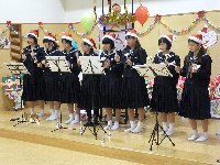 2年生選択音楽のメンバーで邑知保育園のクリスマス会に参加させてもらいました。授業で練習しているハンドベルの演奏を披露し,園児に喜んでもらいました。サンタクロースがみなさんのところにも幸せを運びますね。