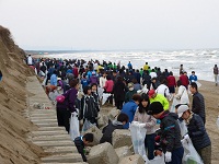 邑知中学校はなぎさクリーン運動に例年全員参加していますが,今年もほとんど全員が参加し地元の海岸をきれいにしました。