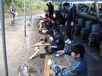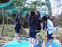 1年生は4月24日(水)・25日(木)に行われましたが,1日目はあいにくの雨のため,エンカウンター,野外炊飯,キャンドルサービス,ダンスを行いました。2日目は天気にも恵まれ,森の家づくりに挑戦しました。