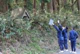 邑知中学校では、積極的にボランティア活動に取り組んでいます。このなぎさクリーン運動では、朝5時45分に羽咋市千里浜海岸に集合し、浜辺のごみを拾い、なぎさの美化に取り組みました。また、年々狭くなっていくなぎさに砂をまき、浜辺の浸食防止・保全を願いました。