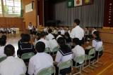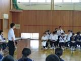 前期生徒会役員が、任期を終え退任のあいさつをしました。各役員からは「地域の一番校」を目指し頑張ったこと、悔いのない活動ができたこと、そして全校生徒の協力のおかげで責任を果たせたことへのお礼など、それぞれに心のこもったあいさつがありました。また、全校生徒は、楽しい学校生活に導いてくれたことに対し大きな声で「ありがとう」を言い、感謝の意を伝えました。