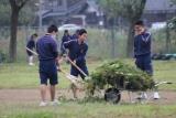 運動場は並んで どんどん刈った草が! 運ぶのが大変!!