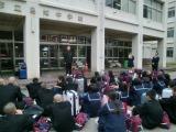 出発式前の目的確認 歓迎!ロッテマリンスタジアムより 球場ディスプレイの邑中生