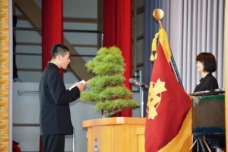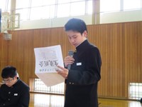 生徒会長中越さんから、生徒会スローガン「めざせ!地域の一番校」のもと、校訓『らしくあれ』を一人一人が意識し、学校生活を充実させるための具体的な3つの柱「Color」「学力向上」「凡事専心」が提案されました。そして、これらの活動に取り組むときにはその意義を深く考え、実践していってほしいと呼びかけました。