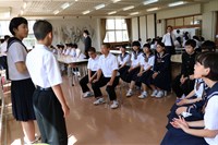 最後に全校生徒が縦割りチームに分かれ、風船リレーで競い合いました。これから力を合わせて取り組んでいく部活動に向け、全校が一体感を味わうよい機会となりました。