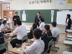 秋晴れのお天気となったこの日、本校は、「いしかわ道徳教育推進事業推進校」として、これまで取り組んできたことを発表する会が行われました。研究主題を「豊かな心で、伝え合い、認め合い、高め合う生徒の育成」とし、小規模校である特色を生かして、道徳の授業を全て担任と副担任の二人体制で行う研究を進めてきました。当日の授業では、各学年が、それぞれのテーマに沿って率直に意見を述べ合う姿や、ゲストティーチャーの話を真剣に聴く姿が見られました