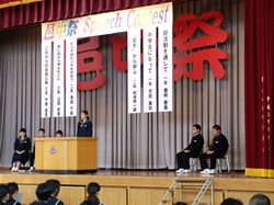 続いて、学級の予選を経て選ばれた各学年2名の代表者によるスピーチコンテストが行われました。自分の経験をもとに力強く訴えかけるスピーチに、会場の審査員はじめ聴衆が引き込まれる素晴らしいスピーチでした。