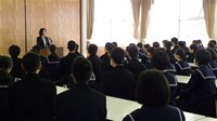 この日の講演は現在の2年生が18歳になる時に、成年年齢が18歳に引き下げられることに伴い、対象となる2年生に向けて企画されました。