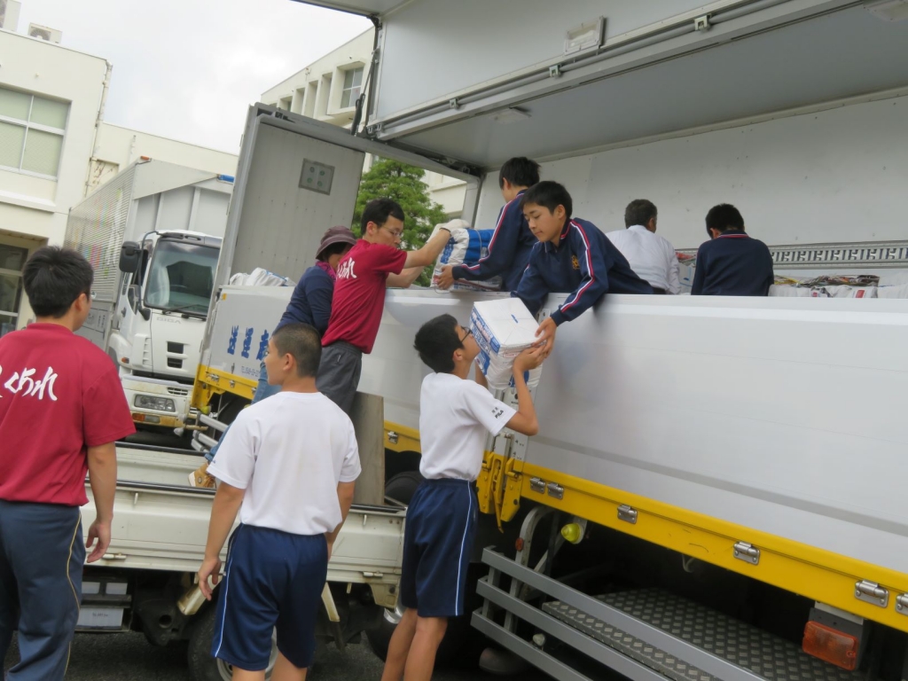 引き続き、各地区の家々から出していただいた新聞や雑誌等の資源の回収がPTA会員と中学生の力で行われました。この収益は例年、学校の教育活動に役立てられています。昨年度は、冷水器と除雪機の購入に充てました。