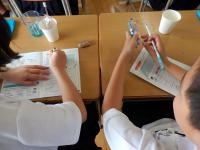 フッ化物洗口が始まりました。担任の話をしっかり聞き、