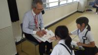 7月11日(木)、手話講師の松井さん、手話通訳者の赤坂さん、手話サークルこぶしのみなさんにご来校いただき、3年生と6年生を対象とした手話講座を開きました。子ども達は、手話での簡単なあいさつや「おりづる」の手話を教えていただきました。教えていただいた「おりづる」の手話は全学年に広げて、夏休みの平和集会で全校児童で歌うことにしています。