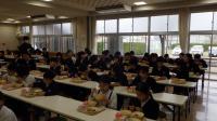 3月16日(木)の給食は、6年生にとって小学校生活最後の給食となりました。デザートに卒業を祝うケーキがついていたこともあり、6年生はしっかり味わいながら食べていました。