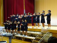 2月6日(火)、来年度入学予定の年長児を迎えて、「新一年生を迎える会」を行いました。会場の多目的室で1年生は、元気よく校歌を歌った後、鍵盤ハーモニカやなわとび、音読を披露し、生活科で栽培したアサガオの種をプレゼントしました。その後、1年教室に移動し、年長児に授業体験をしてもらい、「新一年生を迎える会」は閉幕しました。終始凛々しい姿を見せていた1年生。会を終えた後の達成感に満ちた顔はとても素敵でした。