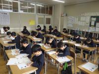 12月18日(月)、5・6年生を対象としたジュニア英検があり、5年生はBRONZE(ブロンズ)、6年生はSILVER(シルバー)を受検しました。受検会場となった音楽室は、ピーンと張り詰めた空気に包まれ、どの子も流れてくる音声を聞き洩さないように集中し、合格目指して真剣に挑む姿が見られました。