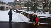 1月24日(水)の朝、前日夕方から降り始めた雪によって、学校の玄関前にはかなりの積雪がみられました。職員が除雪作業をしていると、登校してきた4年児童が一緒に作業に当たってくれました。大助かりでした。