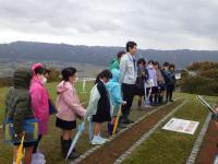 11月20日(月)、生涯学習課の福永さんに説明していただき、「雨の宮古墳群」、「雨の宮能登王墓の館」を見学してきました。子ども達は、目の前にした一号墳、二号墳の大きさに驚きながら、この地をおさめていた王様の力の大きさを感じ取っているようでした。