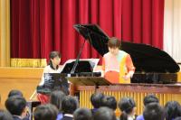 11月7日(木)、創立20周年記念イベントとして、マリンバ演奏者の竹宮純子さんとピアノ演奏者の下原由佳さんによるミニコンサート(PTA教養部主催)を開催しました。子ども達は、一流の方が奏でるマリンバやピアノの音に心を和ませていました。