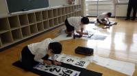 1月15日(月)、震災で1週間遅れとなった3学期の始業式を行いました。登校した子ども達は、友達と再会できたことを喜び、楽しく会話する姿が見られました。終業式の後には、書初め大会がありました。どの学年の子も、手本と向き合いながら、真剣に作品を仕上げていました。