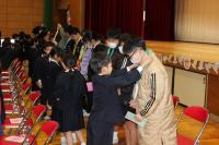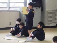 4月12日(金)の5限目に、隊長のPTA会長さんや鹿西駐在所のお巡りさんを始め、7名の隊員のみなさんにご来校いただき、「鹿西パトロール隊との対面式」を行いました。参加してくださった隊員のみなさんに自己紹介をしていただいた後、児童代表から「事故にあわないように気を付けて登下校します。」「元気よく挨拶します。」との思いを伝えました。最後に、全校児童で心を合わせて「見守りお願いします。」と挨拶して、対面式を終えました。