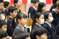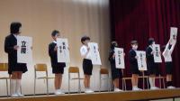 2月6日(火)、来年度入学予定の年長児を迎えて、「新一年生を迎える会」を行いました。会場の多目的室で1年生は、元気よく校歌を歌った後、鍵盤ハーモニカやなわとび、音読を披露し、生活科で栽培したアサガオの種をプレゼントしました。その後、1年教室に移動し、年長児に授業体験をしてもらい、「新一年生を迎える会」は閉幕しました。終始凛々しい姿を見せていた1年生。会を終えた後の達成感に満ちた顔はとても素敵でした。