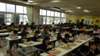 3月16日(木)の給食は、6年生にとって小学校生活最後の給食となりました。デザートに卒業を祝うケーキがついていたこともあり、6年生はしっかり味わいながら食べていました。