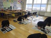 1月15日(月)、震災で1週間遅れとなった3学期の始業式を行いました。登校した子ども達は、友達と再会できたことを喜び、楽しく会話する姿が見られました。終業式の後には、書初め大会がありました。どの学年の子も、手本と向き合いながら、真剣に作品を仕上げていました。