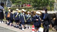 入学式の翌日から3日間の予定で下校指導を行います。初日となった8日(金)は、汗ばむくらいの陽気の中、通学路の安全な歩き方や道路の渡り方の指導を受けながら、家までの道のりを一生懸命に歩く姿が見られました。