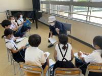 6月30日(木)、3年生は国語「仕事のくふう、見つけたよ」の学習で、中條さん(和菓子職人さん)、中島さん(薬剤師さん)、戸部さん(郵便局長さん)、南先生(図書館司書)にご来校いただき、仕事の工夫を探るためのインタビューを行いました。子ども達は、事前に考えていた質問に加え、話を聞いて浮かんだ質問を次から次へと繰り出す姿が見られました。この後、今回のインタビューを基に、報告文を作成していきます。