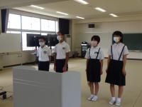 8月5日(金)に予定していた全校登校日を8月22日(月)に実施し、平和について考える場を設定しました。『「小さな平和」を作る行動を積み重ねて、「大きな平和」につなげていこう。』との校長講話に続いて、児童会役員から全校児童に次のメッセージを届けました。その後、各学級で担任や図書館司書からの平和に関する読み聞かせを行い、平和について考える機会としました。