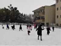 1月13日(木)、朝からの降雪によって、午前中の間に運動場は一面真っ白となりました。昼休み、待ってましたと言わんばかりに、たくさんの子供が運動場に飛び出し、雪遊びを楽しんでいました。