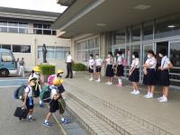 9月12日(月)より、縦割り班をいかしたあいさつ運動を始めました。初日は、赤団の1・2班の5・6年生が児童玄関先に立ち、「おはようございます」の元気のいい声で登校してくる児童を出迎えていました。このあいさつ運動は、あいさつビンゴと連動して2週間に渡って取り組むことになっています。