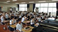 7月14日(金)、松井さんと「こぶしの会」の皆さんにご来校いただき、4・5・6年生を対象とした手話講座を開きました。講座では、全校音楽の『世界中の子どもたちが』と『おりづる』の歌詞に合わせた手話と、日常的な場面でつかえるいろいろなあいさつの手話を教えていただきました。休み間や下校時、覚えたての手話をつかって挨拶している子ども達の姿が見られました。なお、『おりづる』は、夏休み中の平和集会で手話を交えながら全校で歌うことにしています。