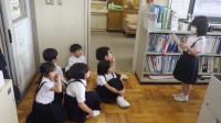 4月26日(金)、1年生は2年生の案内で「学校探検」をしました。2年生は、団ごとに編成された1年生のグループを誘導し、学校のいろいろな場所を意気揚揚と案内していました。クイズを織り交ぜた紹介もあり、1年生は楽しく学校探検することができました。