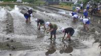 5月16日(木)、坂口区長さん、谷喜義さんをはじめとする能登部下区のみなさんにご指導いただいて、5年生は田植えに挑戦しました。泥だらけになりながらも、笑顔で作業に当たっていた子ども達。初めて田植えを体験する児童がほとんどで、貴重な学びの場となりました。