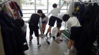 それぞれの児童が、もう着なくなった小さい頃のズボンやTシャツ、パーカーなどを家から持ってきて、
