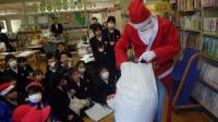 ALTのウォルター先生によるクリスマスクイズ、サプライズゲストとしてサンタさんが登場し、絵本のプレゼント渡し、