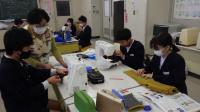 6年生は、家庭科の学習でナップザックやトートバッグ製作を終え、リメイク作品製作に取り組みました。