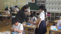 6月21日(水)、5年生は家庭科で裁縫の学習を行いました。裁縫は初めてという児童がほとんどだったこともあり、「中能登着物リメイク会」の松本さんんと三宅さんに学習をサポートしていただきました。子ども達は、苦労しながらも諦めずに、糸通しや玉止め、玉結びに挑んでいました。