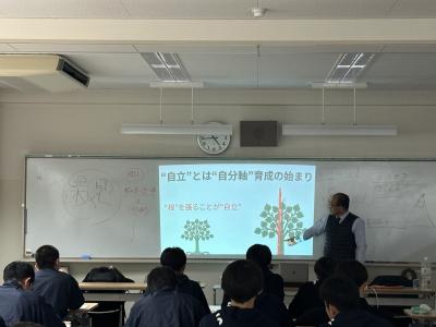 11月18日に七尾警察署の本多大輔様が来校され、犯罪被害者支援の活動を啓発する目的で、男子バスケットボール部、野球部、女子バレーボール部の部員へご講演されました。