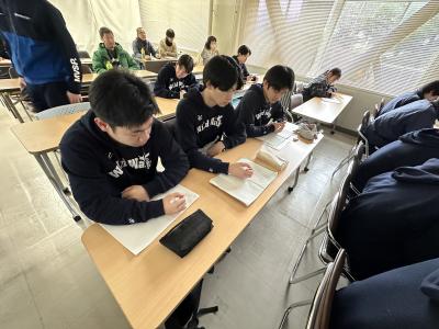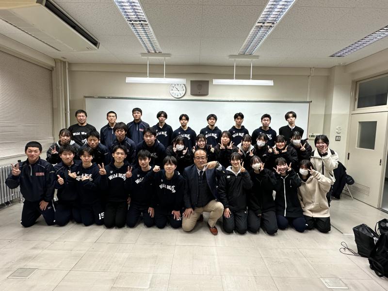 12月21日(土)に、宮崎県のfine lab.代表の森 億(もりはかる)先生を招き、男子バスケ部、野球部、女子バレー部を対象に研修会を行いました。今回は選手やマネージャーに加え、保護者の方も参加しました。