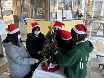 12月10日(水)、2年生の総合的な探究の時間に、5名の生徒が能登部駅にクリスマスツリーを飾りました。