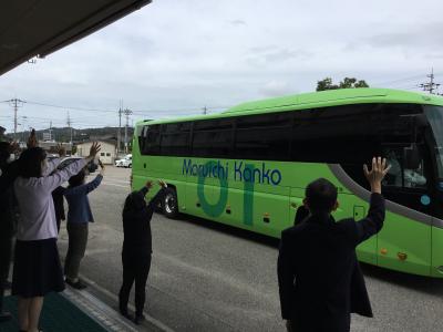 3日間お世話になるバスのガイドさんと運転手さんにお土産を渡して、さあ出発です。