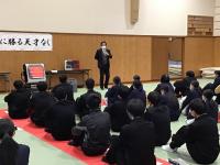 前半は、山内太地先生から勉強方法や大学の選び方などについて分かりやすく説明していただき、生徒たちはメモを取りながら興味津々な様子でした。